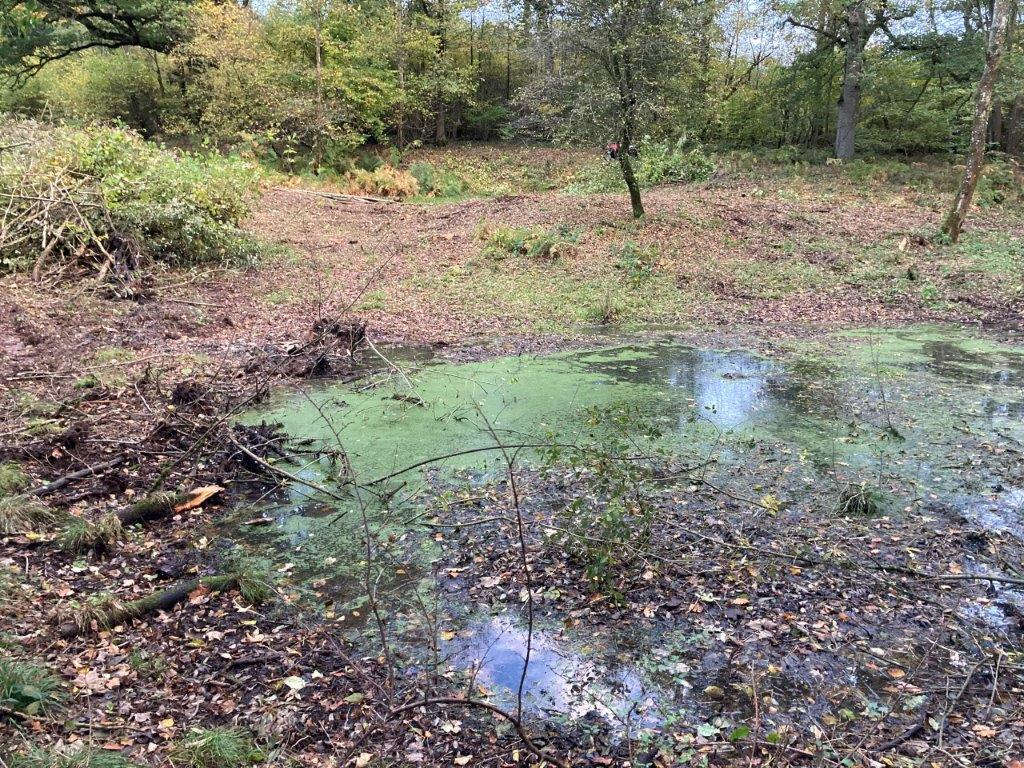 Where ponds have become over shadowed with scrub, we have coppiced around the edges to allow the light back in. The water levels are low for the time of year, and they need more rain.
