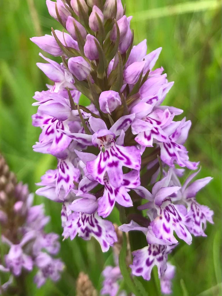 It is a great thrill to find an orchid around here. They are not exactly rare but they are very special, and they need to have exactly the right conditions to thrive. Cows and sheep eat them, so they don’t do very well in intensively grazed grassland. Artificial fertiliser is the kiss of death as orchids suffer from competition from grass in a luxuriant sward. The best place to find orchids is in ancient hay meadows where the grass is not cut until they have had time to flower and set seed.