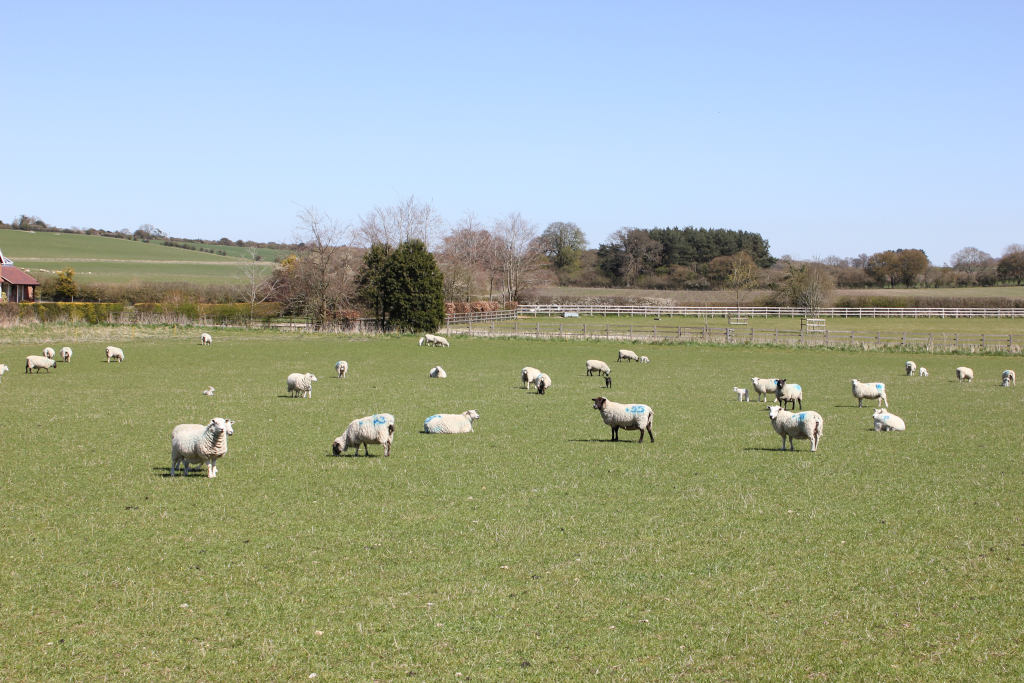 The Doves Farm Sheep flock is made up of 250 Lleyn ewes that graze the clover grass leys that put fertility back in the soil for the arable crops. The flock is run as a closed flock, meaning no females have been bought from other flocks for the last three years. This has helped biosecurity and reduced disease in the flock. Hampshire Down and Lleyn rams are introduced to the ewes at the end of November to give a lambing period at the end of April. All ewes are scanned at 80 days to determine how many lambs each is carrying. The flock is then divided into those carrying singles, twins and triplets. The single baring ewes are put onto lower quality grazing and the twins and triplets get the higher quality grazing as their nutrient requirements are greater. The ewes, lamb outside with as little intervention as possible. The finished fat lambs are sold from 12 to 50 weeks of age.